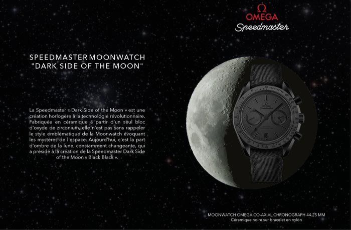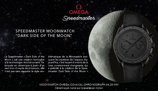 Exercice de mise en page d'affiche pleine page, double page, demi page et banner de montre OMEGA